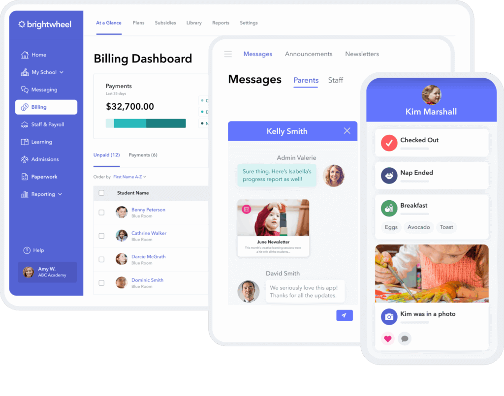• Flawless, automated billing: With brightwheel’s “set it and forget it” billing plans and autopay feature, the center no longer struggles with past-due balances. It also simplifies complex situations like split payments for divorced parents and managing subsidies.